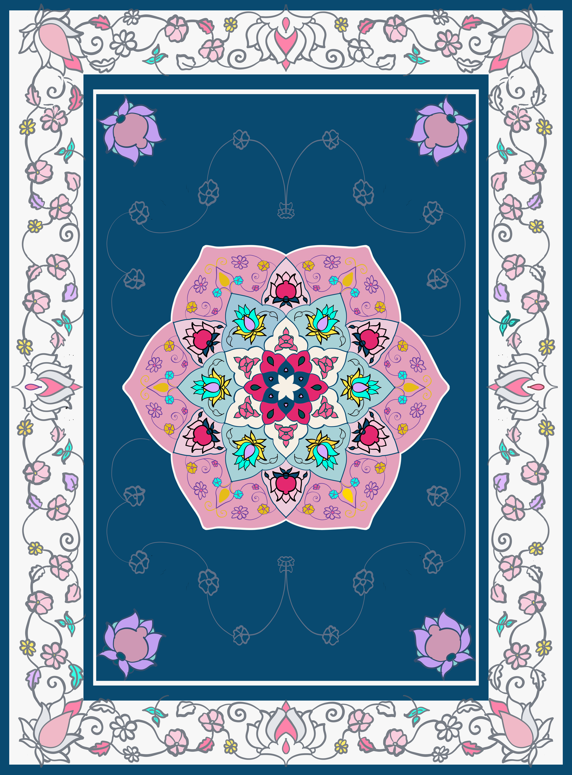 Design of ornamental and floral pattern systems for rugs, wallcoverings, textiles, and decorative surfaces. These designs are developed to translate gracefully across scale and material — from large-format applications such as wallpaper and curtains to smaller decorative objects.